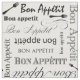 Elegant black and white pattern featuring a repetition of the words "Bon Appetit" in French.