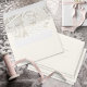 Ornate borders and frames, subtle floral accents and watercolor backgrounds all in soft shades of blush, ivory and gold, combine with a collage of French graphics in this romantic wedding collection. This coordinating envelope features an optional ivory exterior and subtle interior collage pattern. Whether you are planning a destination wedding in France or a romantic celebration close to home, this beautiful wedding suite will create a memorable and lasting impression. Search ID870 to see the complete wedding collection and other color choices for this design.