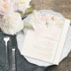 Ornate borders and frames, subtle floral accents and watercolor backgrounds all in soft shades of blush, ivory and gold, combine with a collage of French graphics in this romantic wedding collection. This coordinating reception menu features a lush floral border and a template to add your menu selections, names and wedding date. Search ID870 to see the complete wedding collection and other color choices for this design.