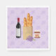 Whimsical design with a French snack of a baguette and chocolate, with a lavender motif.