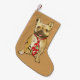 Perfect! Exactly what I ordered! I uploaded a picture of my blue chow, and the screen print was incredible. the back side of the stocking was the red and black checkered print. my puppy's name was also printed on the cuff of the stocking. PERFECT! Highly recommend this product! My puppy's name was screen printed onto the cuff of the stocking, the font was perfect!