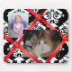 Lovely custom mouse pad done in a French bulletin board look, with a background of black and white damask, and red ribbons and buttons. Personalize this great mousepad with your favorite photographs, or make one as a gift. Great for home or your office everyone will love it.