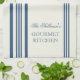 Blue and Cream White French Style Stripe Personalized Kitchen Towels. Personalize all text as you desire. Click "customize" to resize text or change font styles.