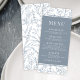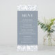 Elegant classical French inspired dusty blue floral pattern wedding menu cards.