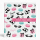 A binder featuring illustrations French macarons, gift boxes, black poodles, "Bonjour", and retro cat eye sunglasses. Personalize the front with your name or other text.