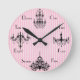 Classic Parisian inspired Clock. Pink Stripes with Cameo Chandeliers.