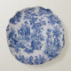 French toile de jouy blue and white elegant round pillow