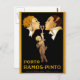 Vintage advertising poster from France showing a man and woman in profile, about to kiss, as Cupid raises a glass of port between their lips. Porto Ramos Pinto. Imperfections removed. Colors corrected.