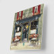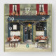 An original watercolor painting by Anne Ormsby of a French Bistro adorns this wall clock.