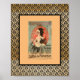 Exposition de Tableaux et Dessins de A. Willette. circa 1897, Jules Cheret artist. Antique advertising print with additional peach and black borders on black and gold brocade.