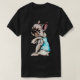 My 11 yo wore adult XL (5’7” 165#). The 8yo is small framed. She wore adult small and tied it in the back. Grandma wore adult large with long sleeve shirt underneath. Tall girl adult medium. Dark haired male adult large. Good quality dark Heather gray, Gildan brand shirt. -it was next up from basic choice and cost about $20 per shirt. Not too thick or thin. Washed and dried well, no major shrinkage. Not see-through. Can wear a bra under it fine. Screen print is just as shown and well done, front and back.