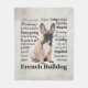 This adorable fawn color French Bulldog fleece blanket, featuring the personality traits of the breed, is a great gift for any Frenchie lover.