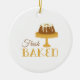 Lightweight, smooth, pure white ornament with nice sheen. Perfect size to be seen from across the room ... and to attract closer inspection! Price was great for ordering enough for the whole family! Clear, bold black design just as requested. Matches the order exactly. Just so nice!