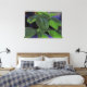 You can almost smell the wonderful fragrance of basil growing in the garden when you see the photo on this Wrapped Canvas Print. The original photograph by MaeFlowers is a closeup of the herb, showing the curving green leaves as they grow two by two to the top of the plant. Light shines through some of the basil leaves, making them lighter green in color. Behind the leaves, the background is dark, blue black, with blue purple emerging in the corners.