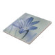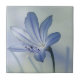 Pretty single blue flower in focus with soft focus pastel blue background.