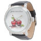 Gift an elegant, unique accessory with this Fresh Cherry Trio in Watercolor Watch for Him. The design, featuring three realistic watercolor cherries, brings a sophisticated, natural touch to the wrist. It’s a perfect personalized gift for a birthday or anniversary. Personalize it with My Sweet Time, Est. 20XX, or Your Name.