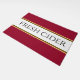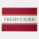 This sporty autumn design features FRESH CIDER text inside a wide white center stripe highlighted with colorful double pinstripes against burgundy red outer stripes.