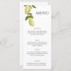 Add a special touch to your wedding with this custom menu. The skinny menu card features fresh citrus illustrations with lemons on a branch and is ready to be customized with your description of dishes in dark brown lettering, and your names and date on the reverse side.