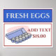 Fresh Eggs sign for local farmer or market,, whatever you want to post to notify patrons. Easy to edit and add text or image to this sign right on the web.