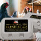 Economical, eye-catching label with FRESH EGGS written in gold beveled text on black