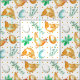 A fun fabric for chicken lovers decorated with golden brown hens, eggs, and herbs hand painted with watercolor with honey yellow polka dots in the background. Great for kitchen decor, crafts, and quilting projects!