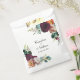 Fresh autumn floral bouquets add an elegant rustic charm to this wedding favor bag design. Personalize the text template with the bride and groom's names and wedding date. This design is also a wonderful choice for engagement parties, bridal showers, or anniversary celebrations. The flowers include burgundy wine and blush pink roses, orange chrysanthemums, white snapdragons, and teal green eucalyptus.