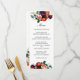 Wonderfully romantic and perfect for fall, late summer, or winter wedding receptions, this menu design features rich romantic colors of burgundy red, blush pink, russet orange and ethereal greenery in a lovely floral border along the top and bottom edges of the design. The back of the menu has coordinating floral bouquets adorning opposite corners of the card. Personalize the text template with your menu selections. Other matching wedding products are available to coordinate with this item.