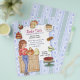 Delightful bake sale flyer theme. Perfect for a patisserie, bakery and other sweet treat businesses too. This design features a young lady stirring a bowl of batter. Blue and white banner has cakes, cookies and cupcakes on it's border. Light blue and white background on front and back. All text on this flyer is ready for you to customize in any way you wish. The standard 80lb matte finish is recommended as the better choice if you plan to fold these flyers as the 100lb is a bit stiff for folding...similar to card stock.