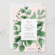 Fresh Greenery Leafy Modern White and Pink Wedding Invitation