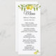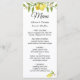 Fresh Lemons Blossom Greenery Wedding Menu Card