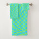 Fresh Light Blue & Green Warped Checkered Pattern Bath Towel Set