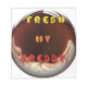 This artwork features the phrase "Fresh My Freddy" arranged within a circular, swirling background that resembles a reflective or liquid surface. The dynamic composition creates a sense of movement, making it an engaging piece for any setting.