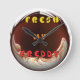 This artwork features the phrase "Fresh My Freddy" arranged within a circular, swirling background that resembles a reflective or liquid surface. The dynamic composition creates a sense of movement, making it an engaging piece for any setting.