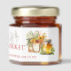 Fresh off the Market Bridal Shower Favor Honey Jar. With an elegant set script for the words "Fresh off the" and the rest of the text you can personalise as required. With farmesr market style jars of honey and tote with sunflowers and fresh produce illustrations.