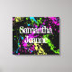 Fresh Retro Neon Paint Splatter on Black Canvas Print