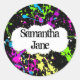 Fresh Retro Neon Paint Splatter on Black Classic Round Sticker