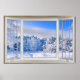 Window with a View Faux Poster Print - Fresh Snow Scene. Enhance the decor of any room with this picturesque poster. The artwork creates the illusion of having a white wooden bay window to look out of. The fresh snow cover of trees makes you feel as though you are looking out at a picturesque winter scene. The original artwork is 36"W x 24"H which is the average poster size and was created at high resolution (300 dpi) so re-sizing it is not a problem. The background scene of this poster is a lot wider so you can slide it left or right to feature a different view by clicking on "edit design". See other beautiful scenes in my store. Feel free to contact me if you have any questions.