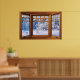 Window with a View Faux Poster Print - Fresh Snow Winter Scene. Enhance the decor of any room with this picturesque poster. The artwork creates the illusion of having a fancy wooden bay window to look out of. The freshly snow covered ground and trees makes you feel as though you are looking out at a picturesque winter scene. The original artwork is 36"W x 24"H which is the average poster size and was created at high resolution (300 dpi) so re-sizing it is not a problem. The background scene of this poster is a lot wider so you can slide it left or right to feature a different view by clicking on "edit design". See other beautiful scenes in my store. Feel free to contact me if you have any questions.