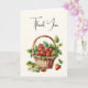 Thank You card with a fresh summer vibe. A cute illustration featuring fresh picked strawberries filling up a quaint wicker basket.