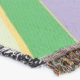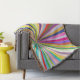 A quality printed throw has its advantages. This is a much finer weave throw than its loopier cousins, and though lighter, it is worth the investment for custom room accessorizing. The back is much prettier than the typical brown, and the fringe on the long sides very vivid, the selvage nicely done. Before photographing, I washed the throw in cold water, delicate, with a thicker woven throw the same size. On tumble dry low, this throw was dry in half the time as the other. This is a very practical quality if you use throws for furniture covers or to wrap up in frequently. The sleekness of the fabric makes it a great layer for accenting or protecting without the feeling of sitting on too much stuff. Perfect for napping or when you feel a light chill coming on. The color printing is beautiful and on this fabric, matched the design and color of my Photoshop image. This is an advantage for blending room fabrics and colors. The fringe on the short sides prints the colors from the design image and therefore varies from the side fringe. I streaked a white fractal line through the plaid pattern to give the illusion of weaving. This printed as crisp as an illusory thread, and put some white in the short side fringe, showing another advantage of print vs loomed- for artistic purposes, line lines, detail, and color integrity can be planned and preserved. My loomed throws have color limitations and more of a needlepoint texture. Print throws reproduce an exact image. The throw felt a little stiff straight out of the package, but this went away in the first delicate wash. Of course I searched the wash water for ink or bleeding and there was none.