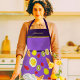 Designed to bring a burst of freshness to your kitchen adventures, let’s discover this beautiful customizable apron! Dark and light purple background, with yellow traits adorned by a colorful assortment of summer fruits—juicy strawberries, zesty lemons, tangy kiwis, refreshing grapefruits, and vibrant oranges—you'll feel the essence of sunny days with every wear.