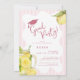 Celebrate your graduate with this bright and cheerful graduation party invitation featuring playful citrus illustrations, soft pink stripes, and a warm, sun‑kissed aesthetic. The front combines fresh artwork with a mix of script and clean typography, creating a lively, modern look that perfectly captures the joy of the season.