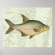 This art print illustrates a detailed painting of a freshwater fish. The background is a vintage map in light aquatic color. This design would perfectly fit any product of your fishing collection.