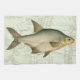 This art print illustrates a detailed painting of a freshwater fish. The background is a vintage map in light aquatic color. This design would perfectly fit any product of your fishing collection.