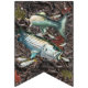 Freshwater Fishing Party Bunting - features muskie, walleye, northern pike, king salmon, striped bass, bigmouth bass, blue gill with a camo background