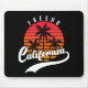Fresno mouse pad with a retro design that features a sunset and palm trees on black background (customizable bg color). This design also features California in a handwritten font with a swash tail glyph for that stylish retro look. This mouse pad is just for you if you are from Fresno or you can get as a gift or souvenir for someone.