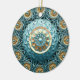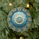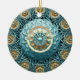 A ring of gold stars in embedded in a disc of interwoven 3D threads, in this ornament resembling a nordic shield.