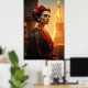 A tribute to Frida Kahlo's spirit—burning bright, unbroken. With floral crown and fire-lit skies, this surreal portrait fuses tradition and rebellion. Vintage textures meet modern mystique. Hang it loud, hang it proud. I am my own muse. I am the flame