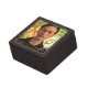 I am so pleased with this little trinket box! The website photo doesn't do it justice. The photo on top is so glossy and beautiful! The colors are awesome. The lid and the box both have 2 little magnets so that the lid stays on, which I love. It arrived in good time. My 11 year old granddaughter is going to love it. Many thumbs up! There was no printing on this item, but the colors in the photo of the box lid are beautiful and vivid.