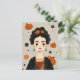 Send spooky-cute Halloween greetings with this charming postcard featuring Frida Kahlo surrounded by whimsical pumpkins. Blending playful seasonal details with artistic flair, it’s perfect for sharing festive messages, party invitations, or just a touch of Halloween fun. Bold, creative, and unique, this postcard adds a stylish and memorable twist to your spooky season correspondence.